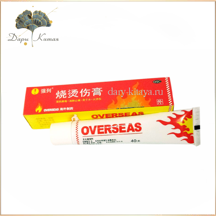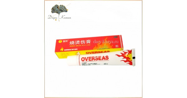 Крем  ранозаживляющий обезболивающий  "OVERSEAS " от ожогов и отеков.  Натуральный продукт бледно-желто- зелен..