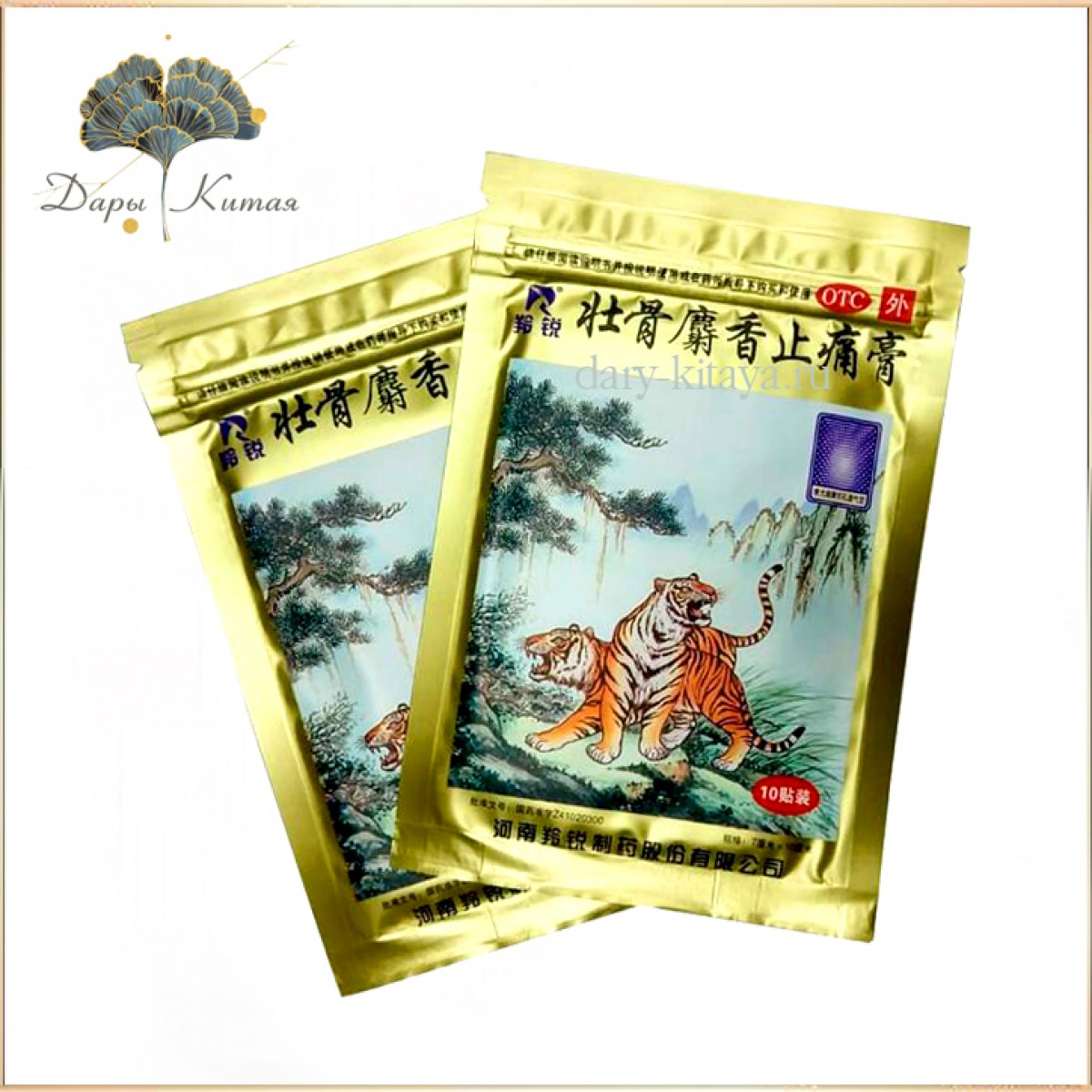 Пластырь обезболивающий на основе мускуса «Два Тигра» усиленный (золотой). Большой. 7 х 10 см.