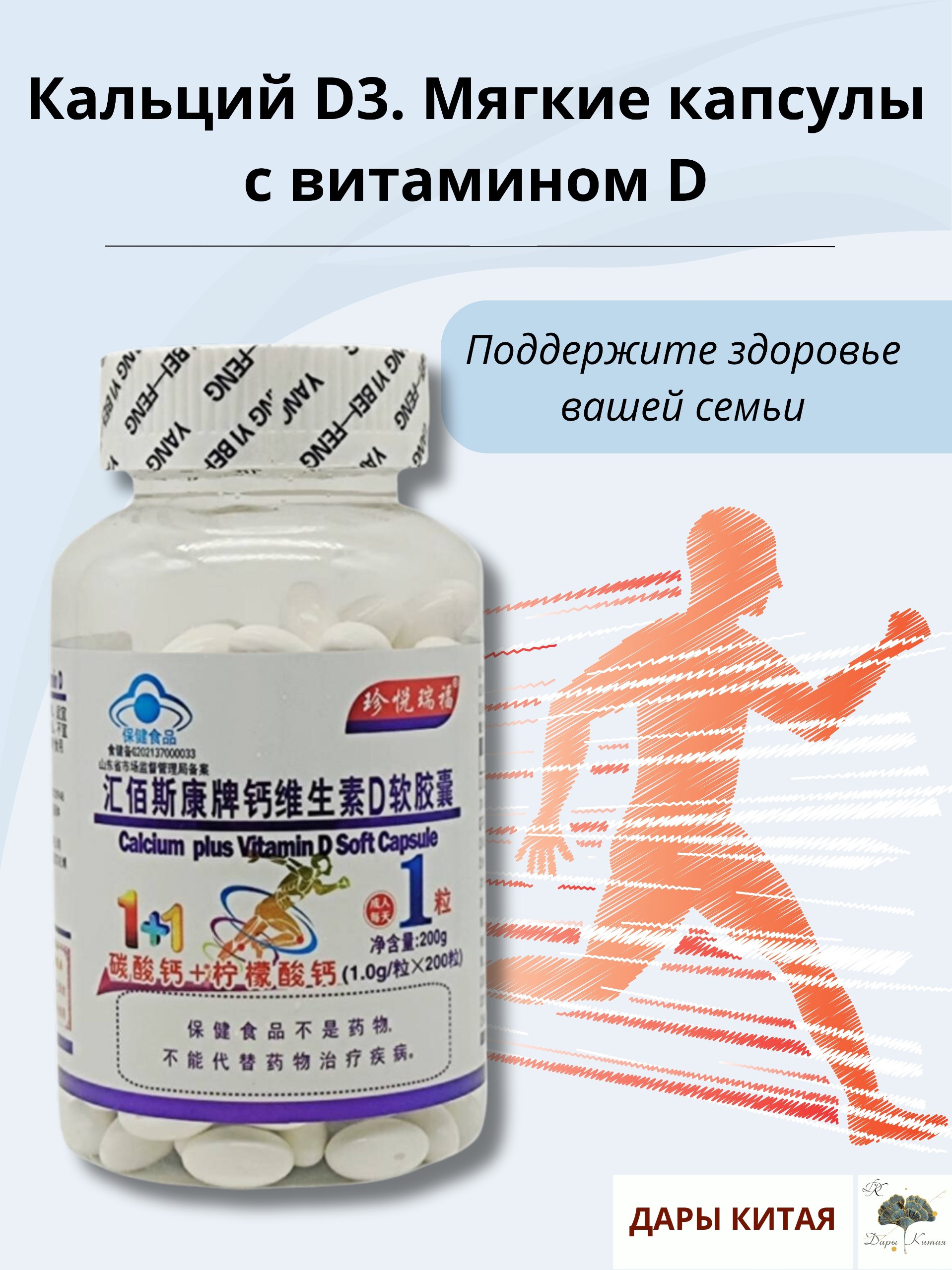 Кальций D3. Мягкие капсулы с витамином DCalcium Vitamin D Soft Capsule, 200 шт. Жидкий кальций из жемчужной пудры с витамином..