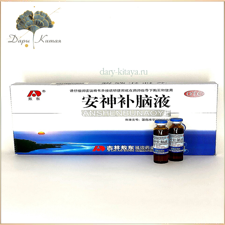 Эликсир Аньшень Бунаоэ (An Shen Bu Nao) от нервного расстройства, для питания мозга. 10 ампул. Натуральный препарат, улу..