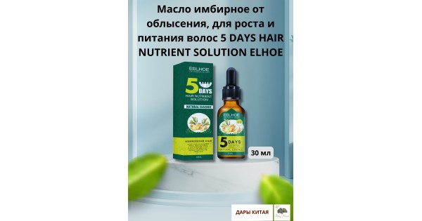 Масло имбирное для роста и питания волос ELHOE 5 DAYS HAIR NUTRIENT SOLUTION, 30 мл Эффективное средство против облысения и д..
